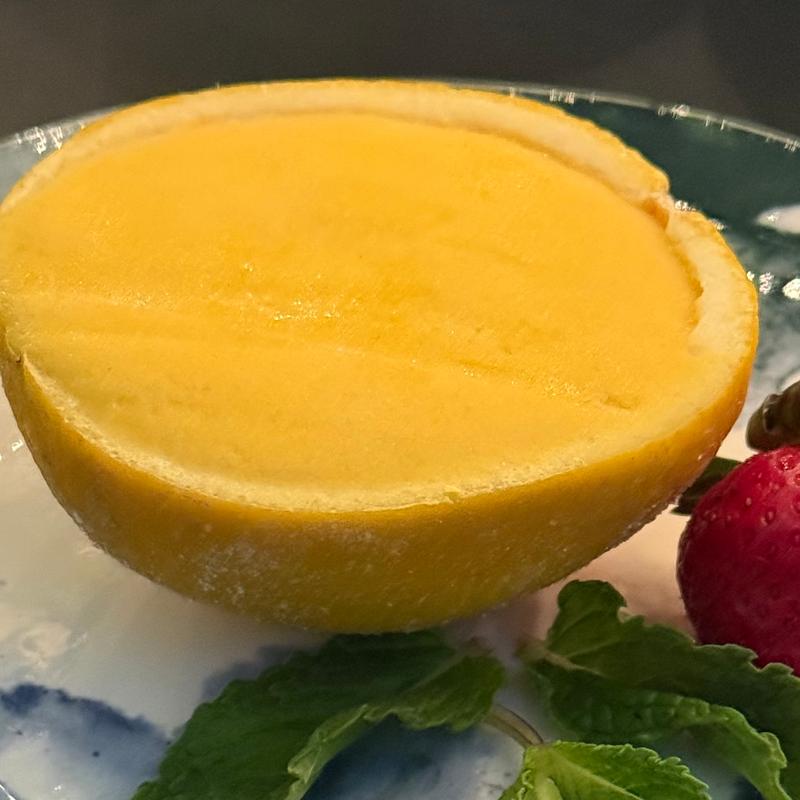 Silky lemon sorbet with a touch of cream frozen in a large lemon shell! Non GMO, gluten free and Kosher. The perfect after-dinner treat!