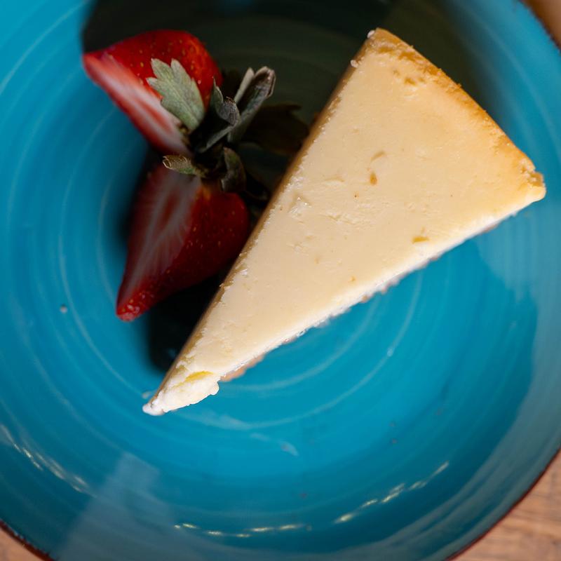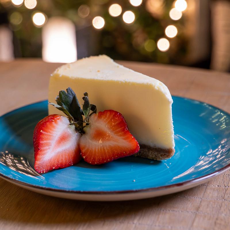 Generous slice of rich and creamy New York style cheesecake. Chilled to perfection.
