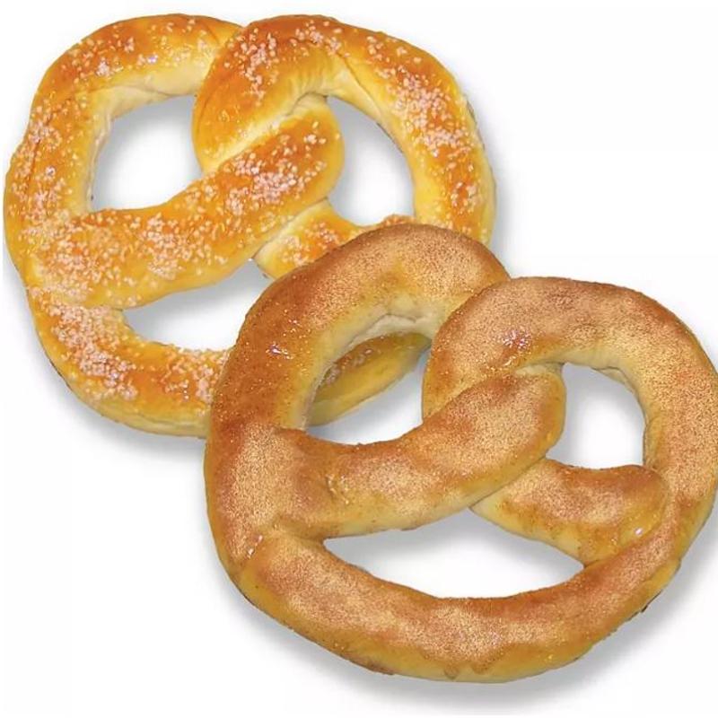These large fresh-baked soft pretzels are perfectly chewy and can be enjoyed sweet, salty or a combination of both (Salt, or Cinnamon/Sugar). Fresh, and hot out of the oven.